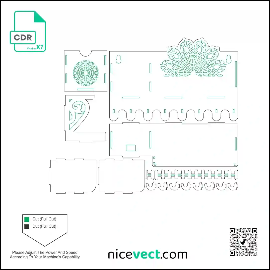 The Laser Cut Key Hanger and Mobile Holder CDR File is a premium-quality vector design created especially for CNC router and laser cutting projects. It is designed in CorelDRAW X7 format and provides a stylish yet practical solution for keeping keys and mobile phones organized. Whether you are a designer, craftsman, or CNC operator, this file helps you save time and achieve professional-quality results with ease.