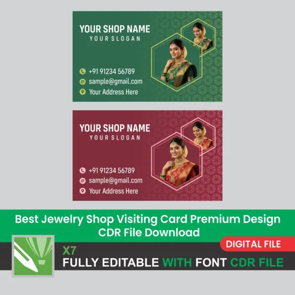 The Modern Jewelry Shop Visiting Card Design is a clean, attractive, and professional template crafted especially for jewelers, printing professionals, and graphic designers. This premium business card layout helps jewelry stores present their brand with elegance and clarity. The file is provided in CDR (CorelDRAW X7) format, making it fully editable and easy to customize.